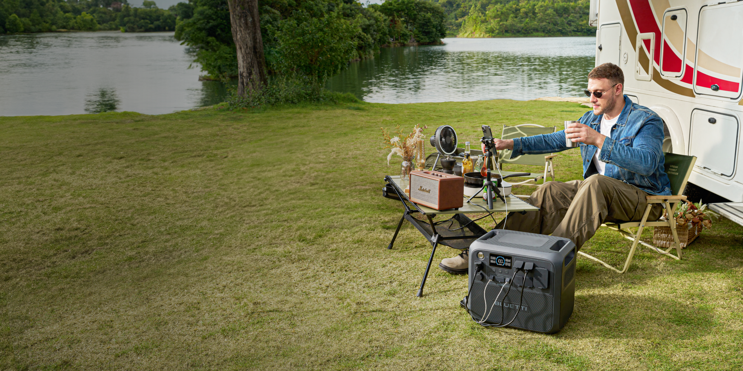 Hit the road and take your home with you. BLUETTI’s eco-friendly power stations and solar generator for RV keep your devices charged, fridge running, and nights bright. Whether working in nature or stargazing, enjoy the comforts of home on every vanlife adventure.