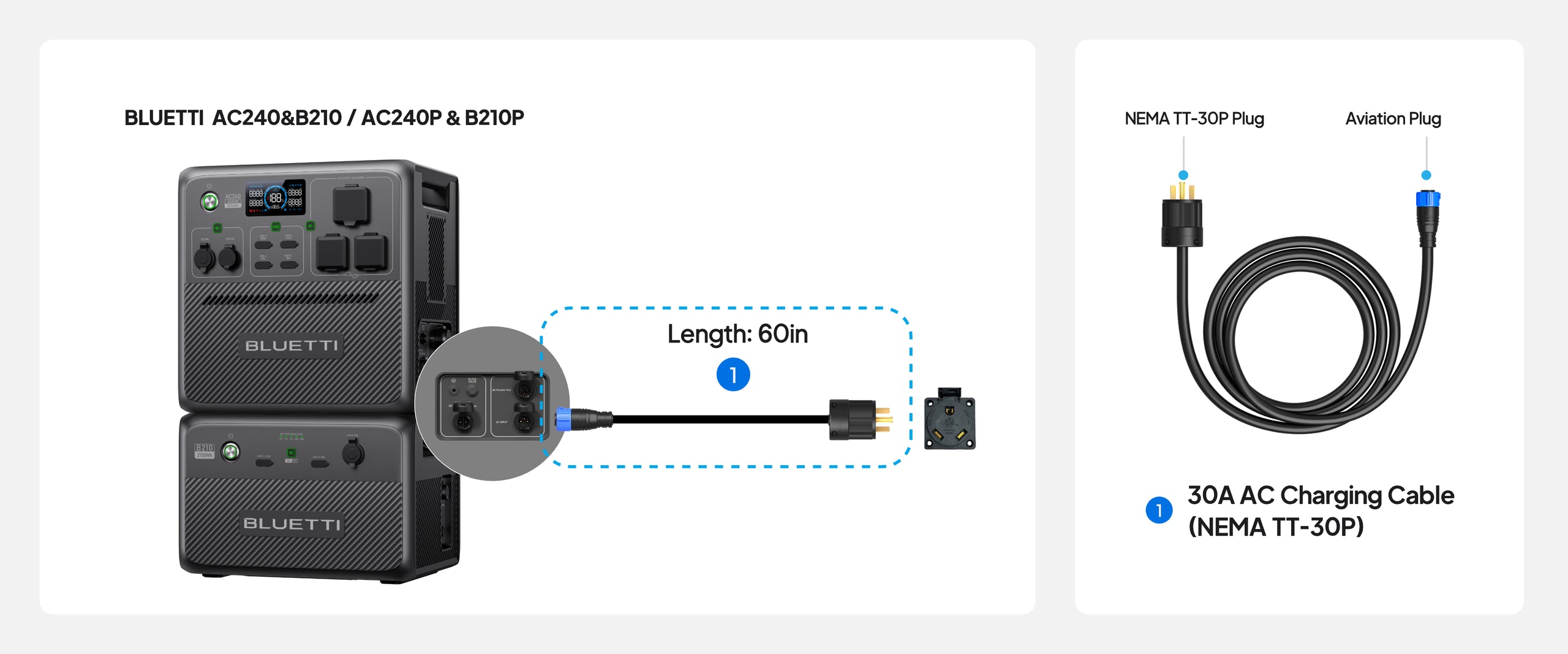 • Overview: Charge AC240 / AC240P via a 30A wall outlet for max. input power