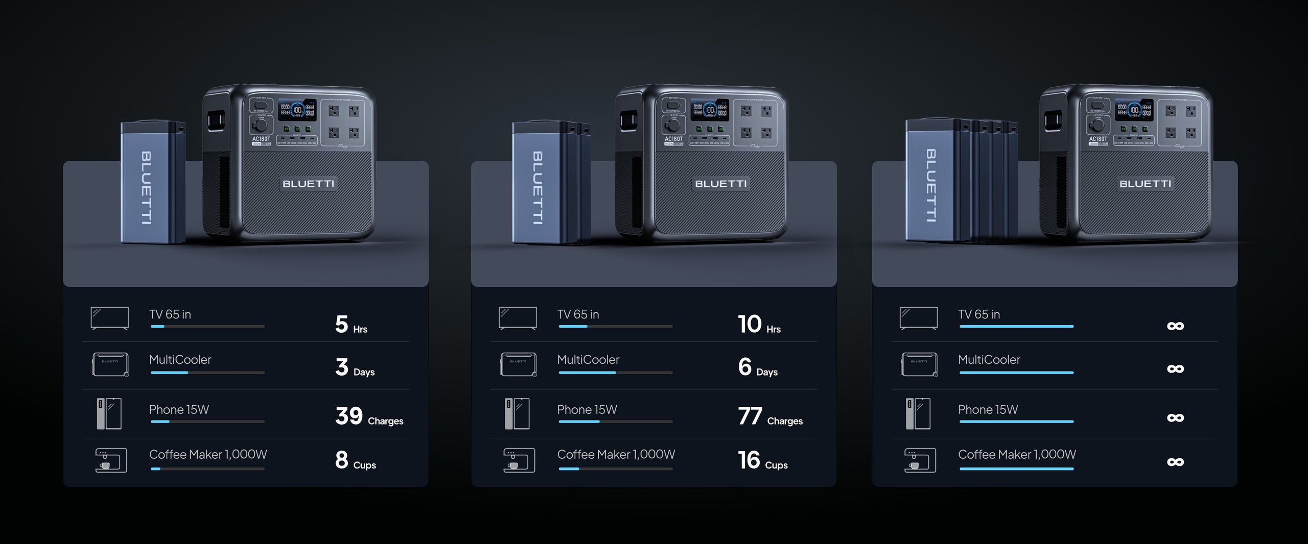 AC180T allocates energy from both batteries to ensure complete operation. -