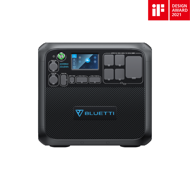 BLUETTI first expandable power station-AC200MAX with 2,048Wh LiFePO4 cells and 2,200W pure sine wave inverter.