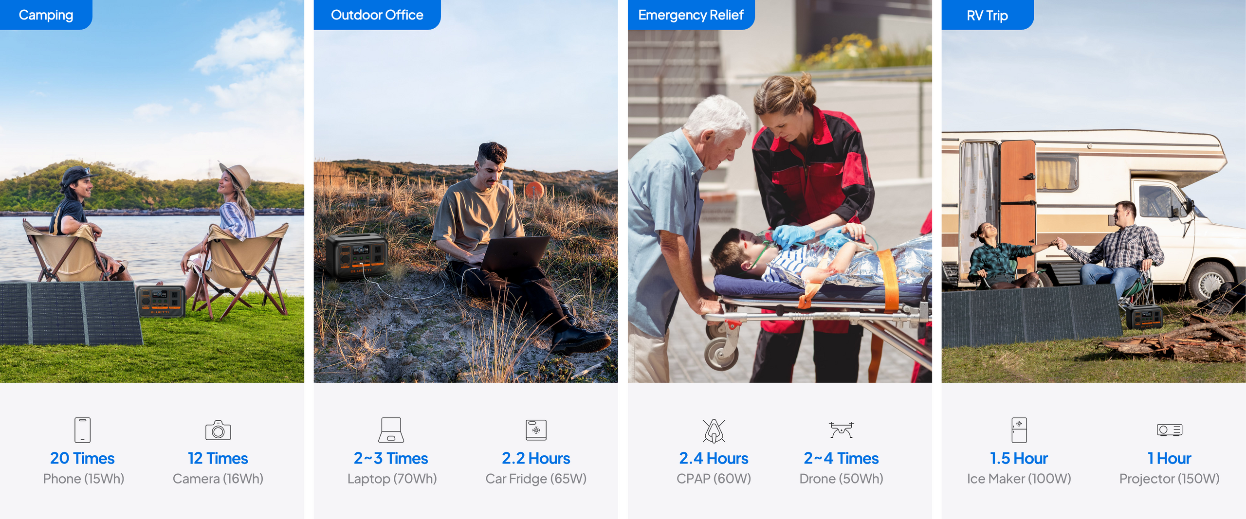 A:AC2P supports up to 950W AC input. Plug it into a wall outlet and enable the Turbo Charging mode on the BLUETTI App, and you can fill it up in only 1.5 hours.