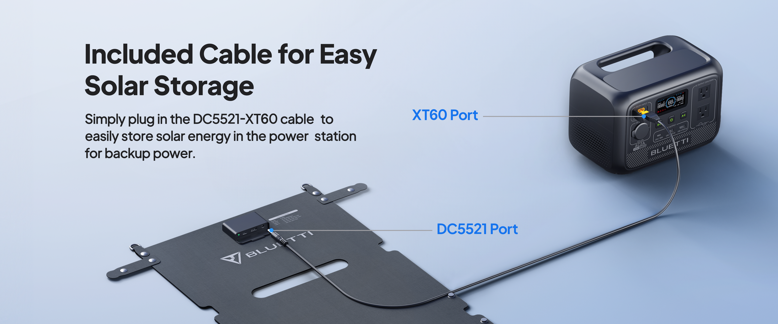 Included Cable for Easy Solar Storage